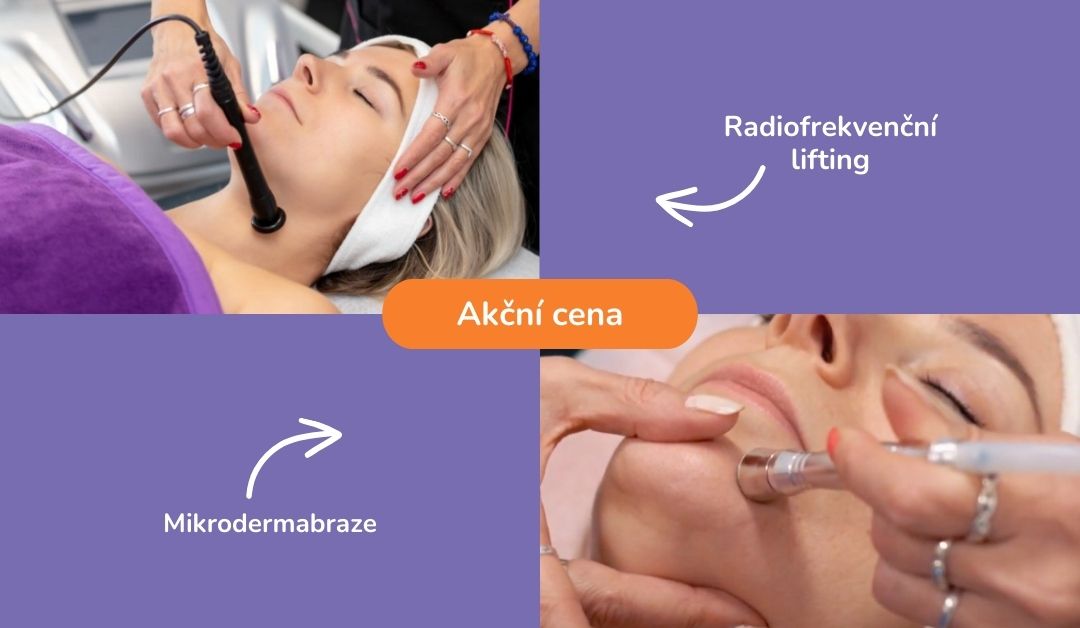 Zima je ideální období, kdy dopřát své pleti péči. Právě teď pro vás máme dvě oblíbené procedury v akční nabídce. Radiofrekvenční lifting vám pomůže vypnout a omladit pleť bez jakéhokoli zásahu či bolesti. Mikrodermabraze zase jemně obrousí vrchní vrstvu pokožky, odstraní odumřelé buňky, vyčistí póry a rozzáří pleť.